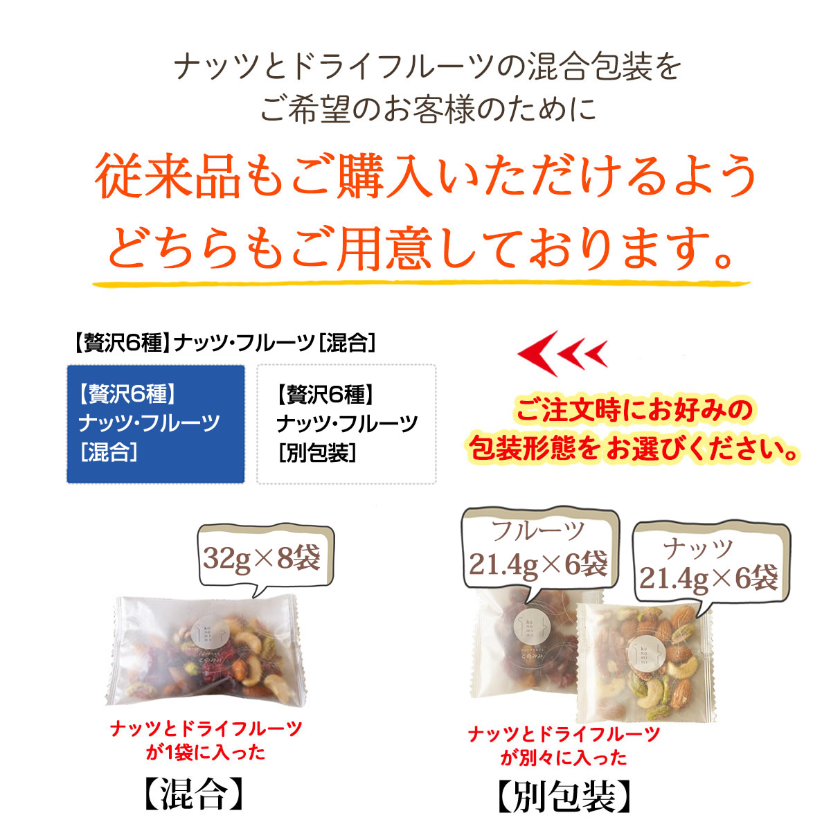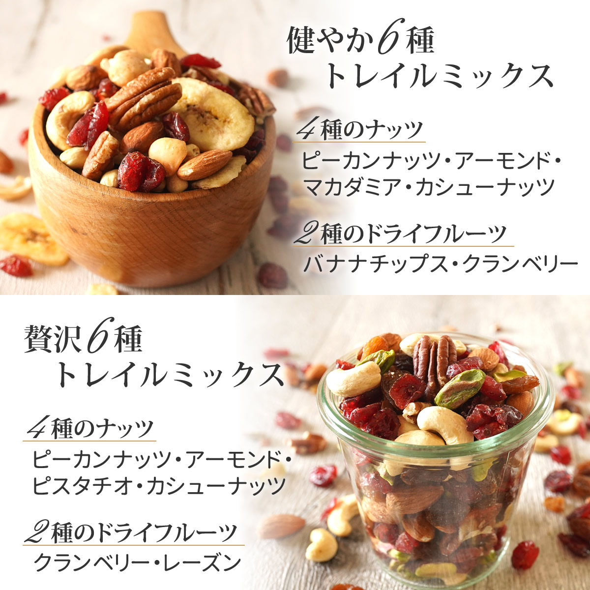 個包装の形態(混合・別包装)が選べる 【健やか6種・贅沢6種 トレイルミックス 256g】