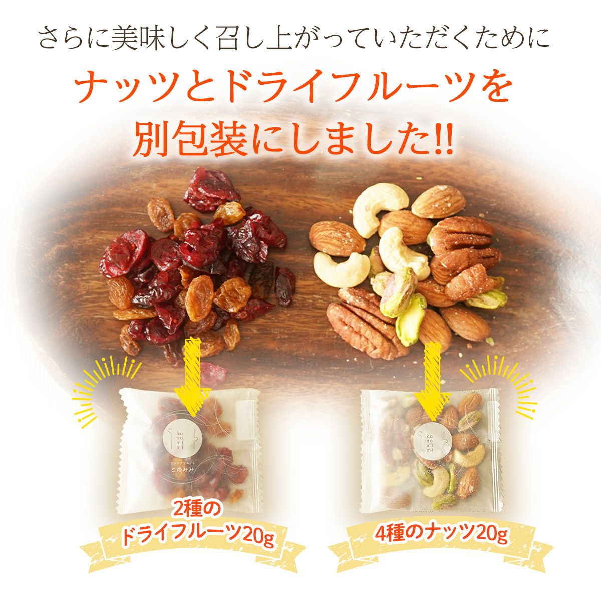 他の画像を見る ピーカンナッツ、アーモンド、ピスタチオ、カシューナッツ、クランベリー、サルタナレーズン。 贅沢6種 トレイルミックス 320g 【ナッツ・フルーツ個別包装】 当店特別価格 ¥ 1,380 税込 ミックスナッツとドライフルーツを別々に包装した個別包装タイプです。 詳細を見る お気に入りに登録する
