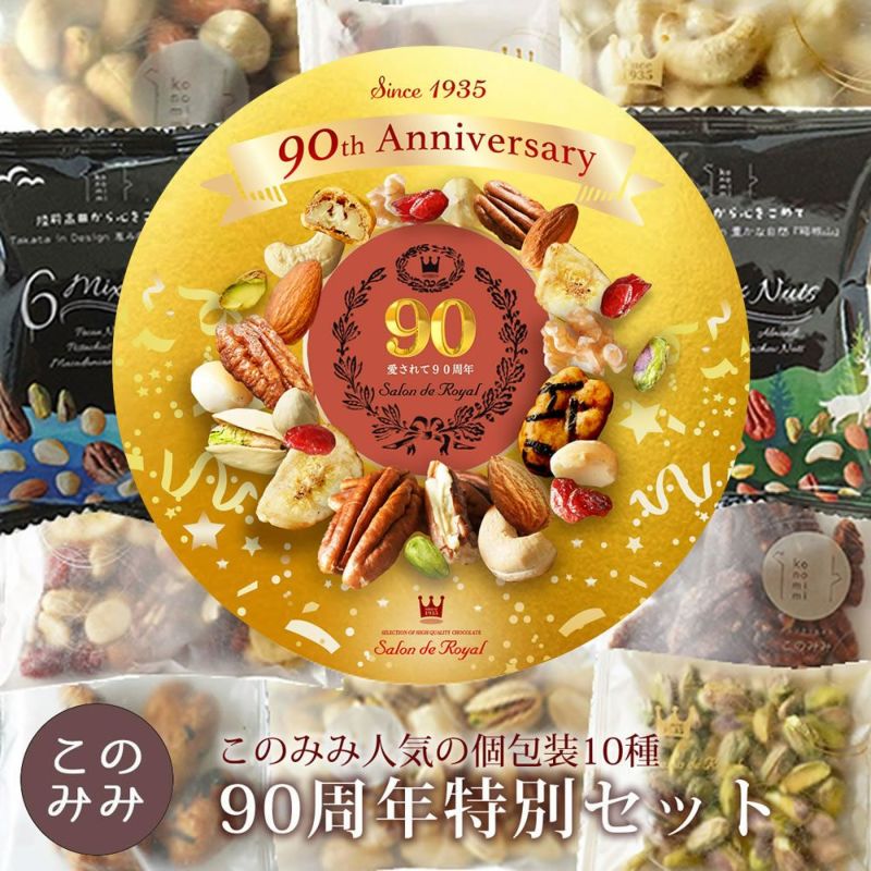 このみみさんのスター商品が勢揃いです。大好きなナッツもドライフルーツもキャンディピーカンもピーカンからからも入っていて嬉しい90周年特別セットです。