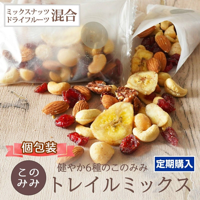 ピーカンナッツ、アーモンド、マカダミアナッツ、カシューナッツ、クランベリー、バナナチップス。 【定期購入】健やか6種 トレイルミックス 256g (ナッツ・フルーツ混合包装)