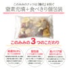 原材料クランベリー加工品(アメリカ製造(クランベリー、砂糖、植物油脂))、アーモンド、カシューナッツ、バナナ加工品(バナナ、ココナッツオイル、砂糖)、ピーカンナッツ、マカダミアナッツ/香料