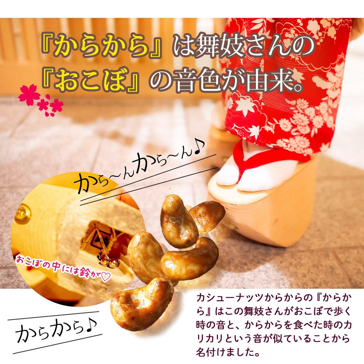 他の画像を見る 舞妓はんのおやつ 【カシューナッツからから 180g】 当店特別価格 ¥ 1,600 税込 カシューナッツをお醤油味のおかきで包みました。よそでは見かけない、珍しいのに懐かしい風味のお菓子です。 詳細を見る お気に入りに登録する
