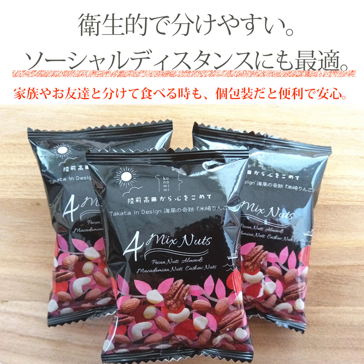 原材料アーモンド(アメリカ産)、カシューナッツ、ピーカンナッツ、マカダミアナッツ