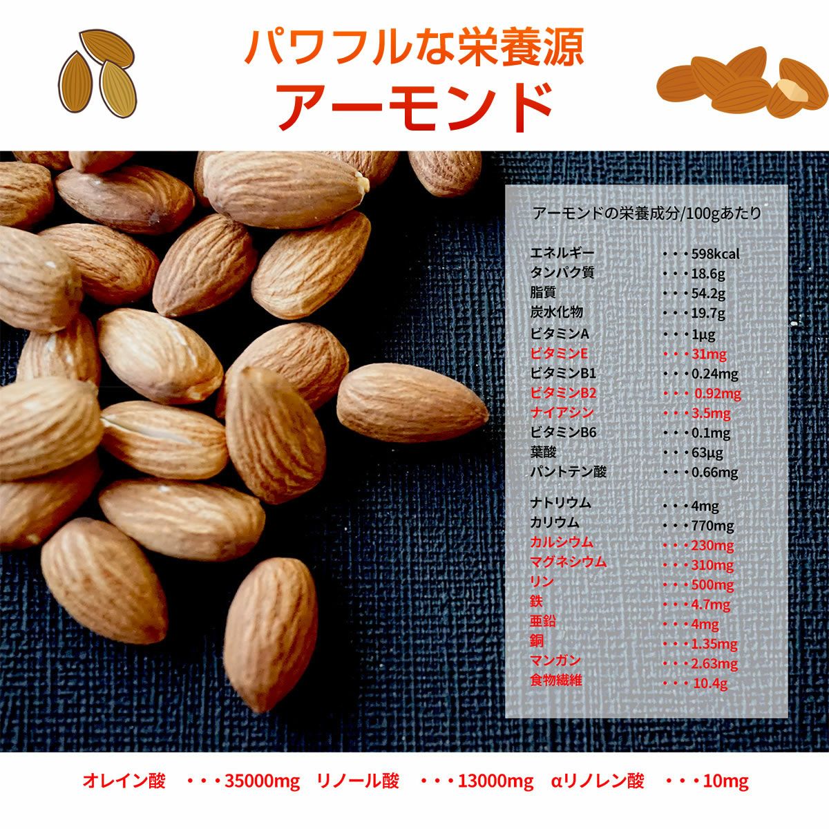 他の画像を見る ナッツ 素焼き 小分け 個包装 無塩 無添加 おつまみ アーモンド ロースト 1000g 当店特別価格 ¥ 3,000 税込 香ばしいアーモンドを、無添加で深煎しました。お料理やお菓子づくりにもおすすめです。 詳細を見る お気に入りに登録する