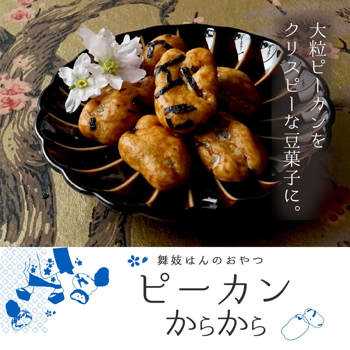 他の画像を見る 舞妓はんのおやつ 【ピーカンからから 40g】 当店特別価格 ¥ 650 税込 ピーカンナッツをお醤油味のおかきで包みました。よそでは見かけない、珍しいのに懐かしい風味のお菓子です。 詳細を見る お気に入りに登録する