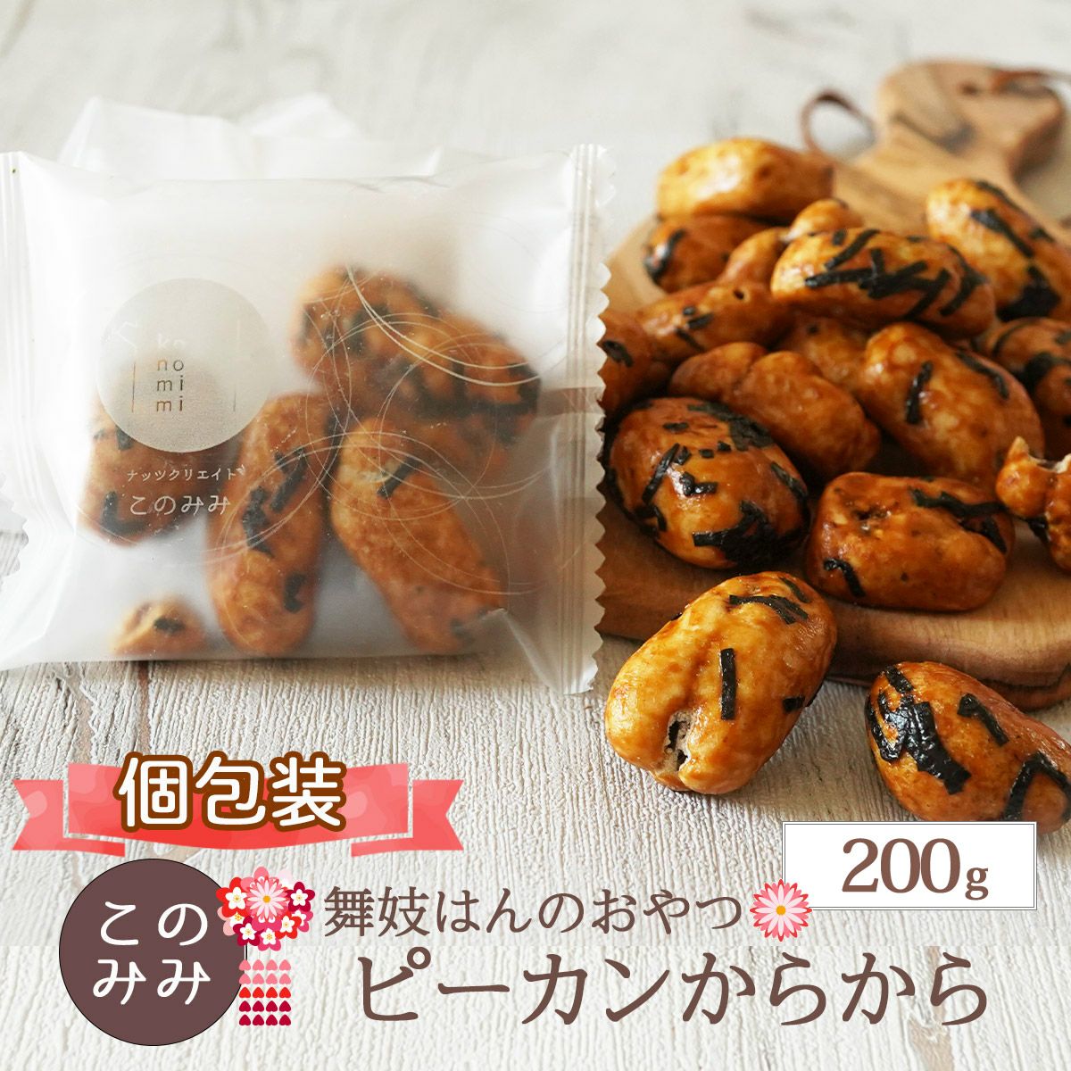 他の画像を見る 舞妓はんのおやつ 【ピーカンからから 200g】 当店特別価格 ¥ 1,600 税込 ピーカンナッツをお醤油味のおかきで包みました。よそでは見かけない、珍しいのに懐かしい風味のお菓子です。 詳細を見る お気に入りに登録する