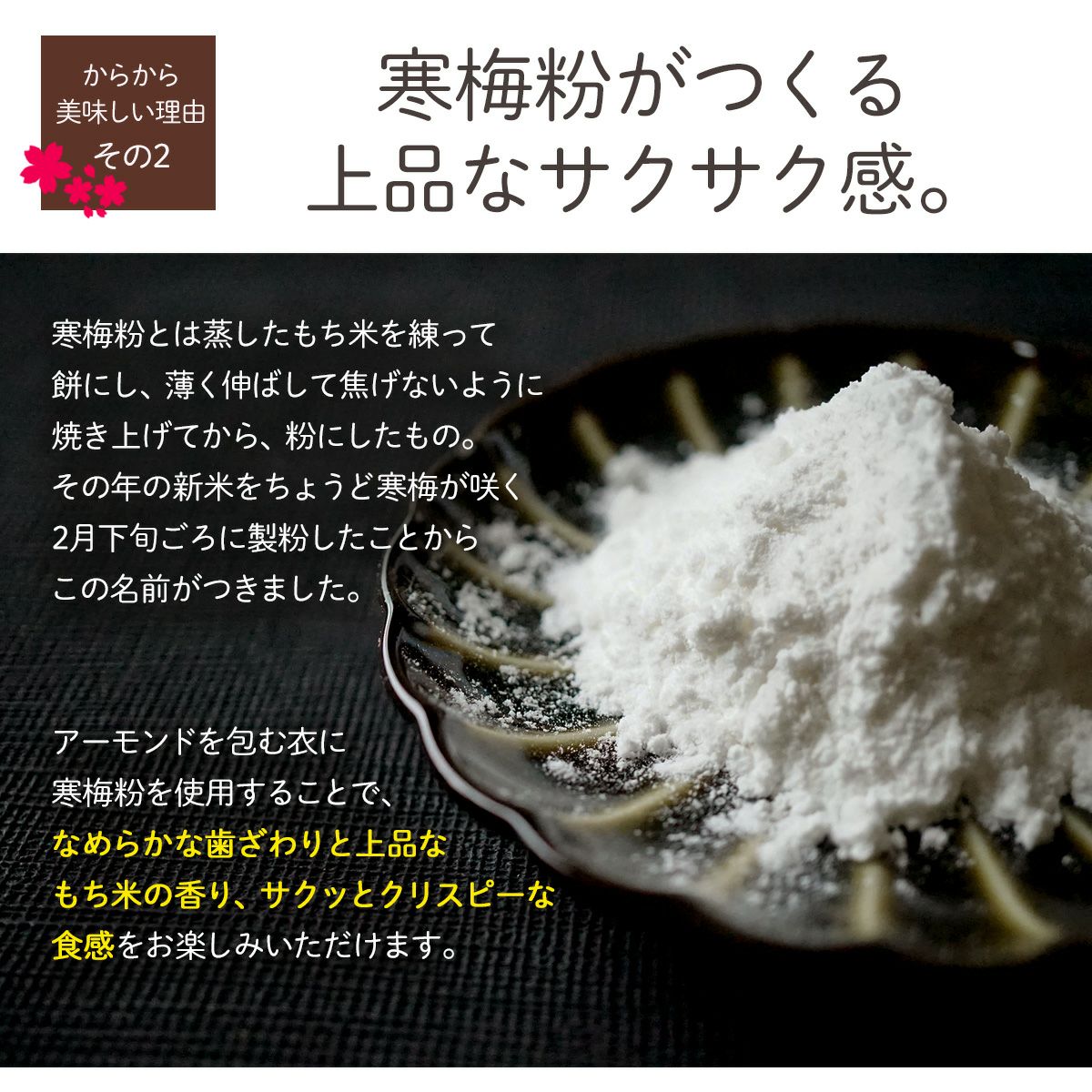 他の画像を見る 舞妓はんのおやつ 【アーモンドからから 200g】 当店特別価格 ¥ 1,500 税込 アーモンドをお醤油味のおかきで包みました。よそでは見かけない、珍しいのに懐かしい風味のお菓子です。 詳細を見る お気に入りに登録する