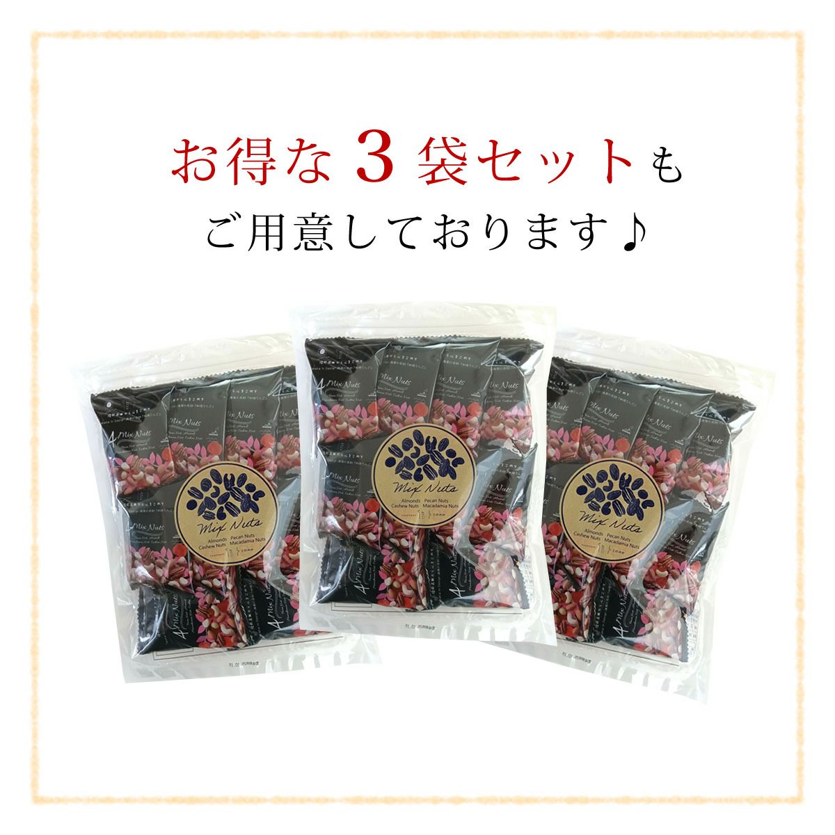 他の画像を見る ピーカンナッツ、アーモンド、マカダミアナッツ、カシューナッツ、クランベリー、バナナチップス。 【定期購入】健やか6種 トレイルミックス 320g (ナッツ・フルーツ混合包装) 定期販売 1回あたり ¥ 1,280 税込 ミックスナッツ・ドライフルーツ混合包装タイプの定期購入専用カートです。 詳細を見る お気に入りに登録する
