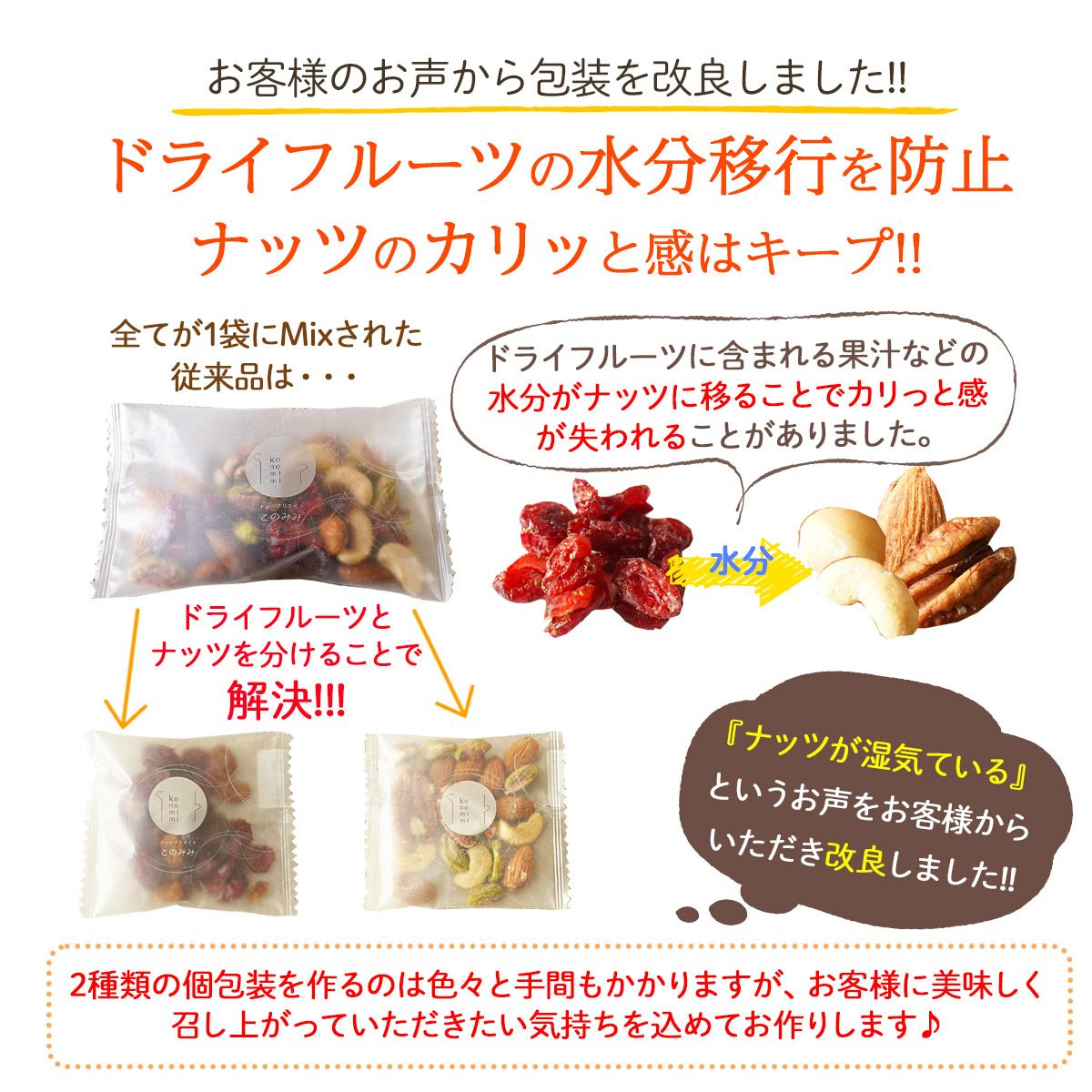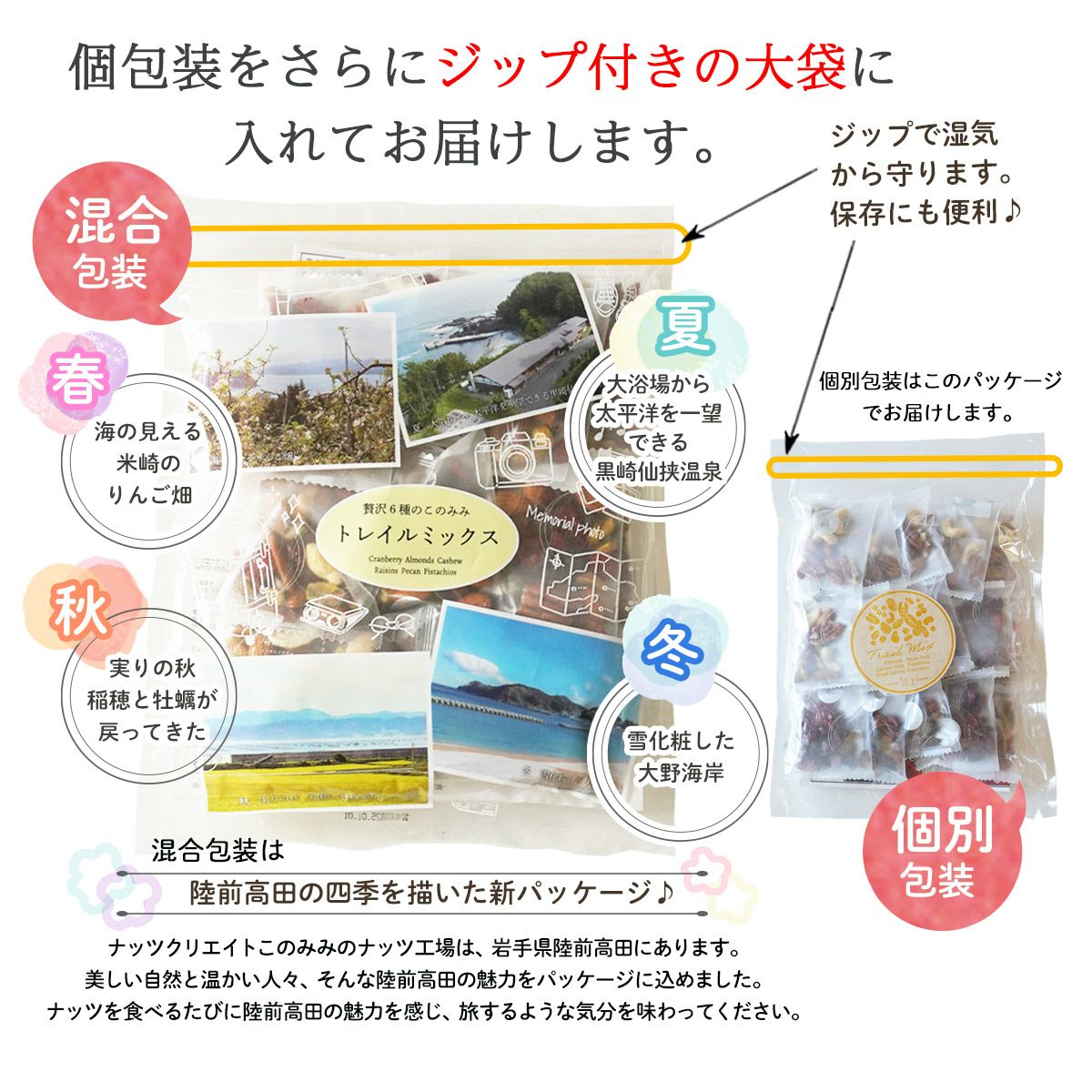 他の画像を見る ピーカンナッツ、アーモンド、ピスタチオ、カシューナッツ、クランベリー、サルタナレーズン。 個包装の形態(混合・別包装)が選べる【贅沢6種 トレイルミックス 320g】 当店特別価格 ¥ 1,380 税込 このみみ人気No1ミックスナッツとドライフルーツの個包装トレイルミックスです。 詳細を見る お気に入りに登録する