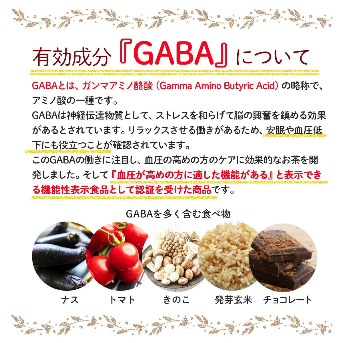 他の画像を見る 血圧に働きかけるGABAとピーカンナッツの殻をブレンドした香り高い紅茶です。 【血圧が高めの方に】ピーカンGABA紅茶 機能性表示食品 当店特別価格 ¥ 800 税込 〜 当店特別価格 ¥ 税込 本品にはGABAが含まれています。GABAには血圧が高めの方に適した機能があることが報告されています。 詳細を見る お気に入りに登録する