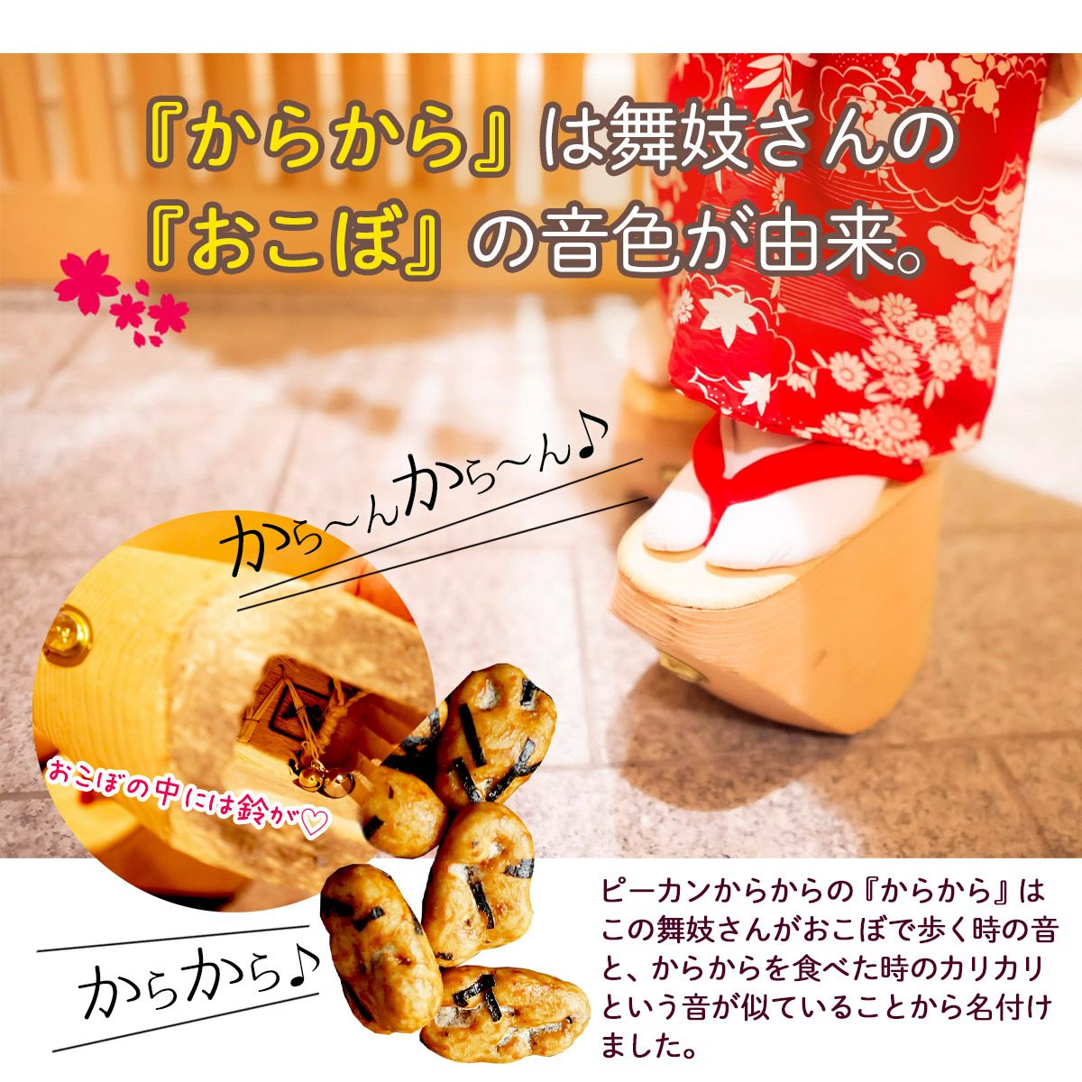 他の画像を見る 舞妓はんのおやつ 【ピーカンからから 200g】 当店特別価格 ¥ 1,600 税込 ピーカンナッツをお醤油味のおかきで包みました。よそでは見かけない、珍しいのに懐かしい風味のお菓子です。 詳細を見る お気に入りに登録する